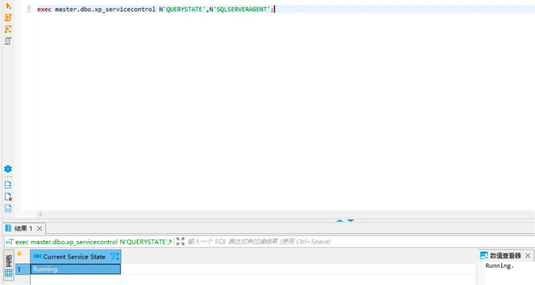# 切换到待迁移业务数据库执行 exec master.dbo.xp_servicecontrol N'QUERYSTATE',N'SQLSERVERAGENT';