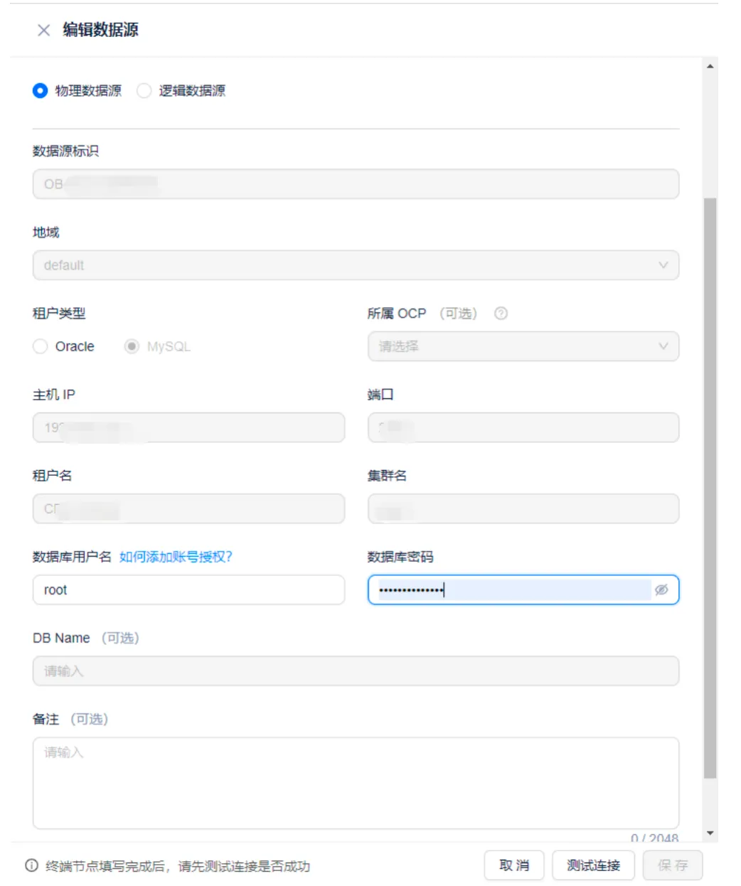 以添加 OceanBase(MySQL 模式)数据源如下。