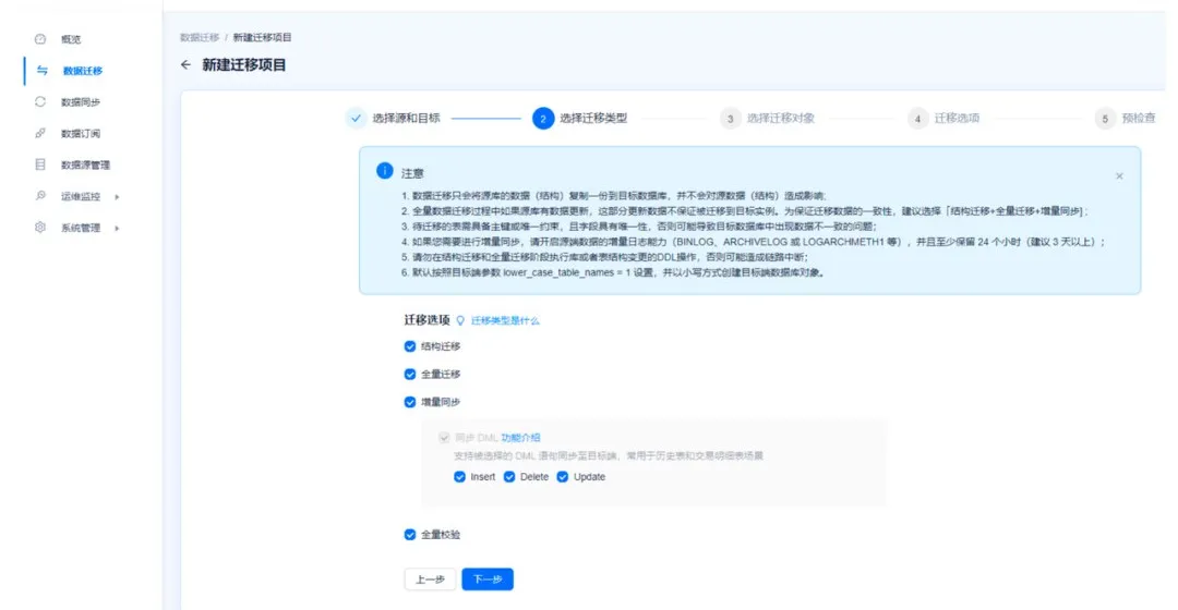 注意:目前暂不支持同步 DDL。