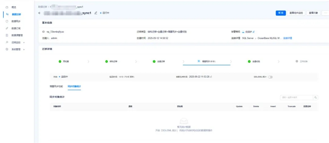 Action OMS 对于 SQL Server 数据库的迁移链路与其他数据库一样,支持全量校验等功能,可自行进行全量校验或正向切换。