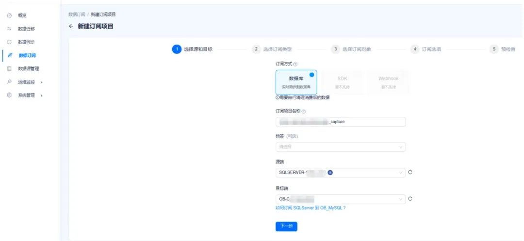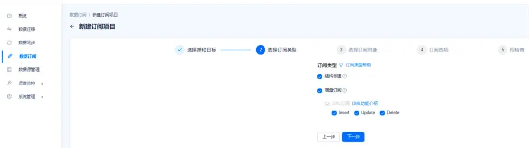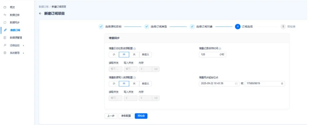 注意:订阅选项中,增量同步的【起始位点】必须在源端 SQL Server 中业务表开启 CDC 功能之后,且 CDC 数据未被清理。