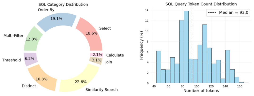 为表征 BiomedSQL 的科学和计算复杂性,作者对所有 68,000 个问题-查询对进行了 SQL 操作类型和生物医学推理类别的标注。较简单的操作,如选择、排序和计算——需要相对浅层的语法解析,大语言模型通常在这方面表现良好。相比之下,多条件过滤、阈值判断、表连接和相似性搜索等操作则更具挑战性,因为它们需要多步逻辑组合、隐式模式链接或基于模式的检索能力。