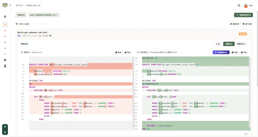 本次版本 新增函数对象转换能力,扩展了达梦等多数据库迁移适配范围,并提升了批量转换的处理效率,进一步降低企业级数据库迁移的复杂度与成本。